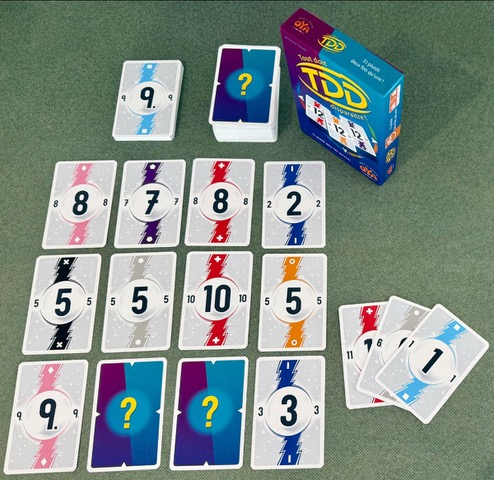 Dans TDD, le départ est familier : 9 cartes en carré face cachée devant chaque joueur, une pioche et une défausse. Et le but: piocher, révéler, remplacer pour améliorer son tableau.