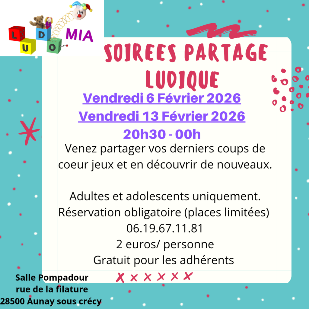 Réservation obligatoire à l’adresse e-mail ludomia.ludotheque28@gmail.com.